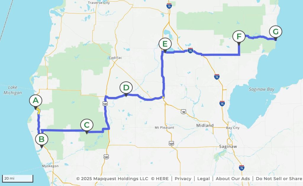 2026 ROUTE: PALM 43 host sites are: Pentwater, Montague, White Cloud, Evart, Houghton Lake, Hale and Oscoda.