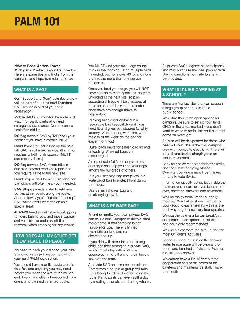 New to Pedal Across Lower Michigan? Maybe it’s your first bike tour. Here are some tips and tricks from the veterans, and important rules to follow.