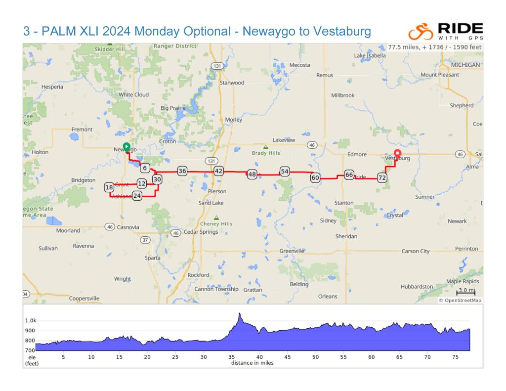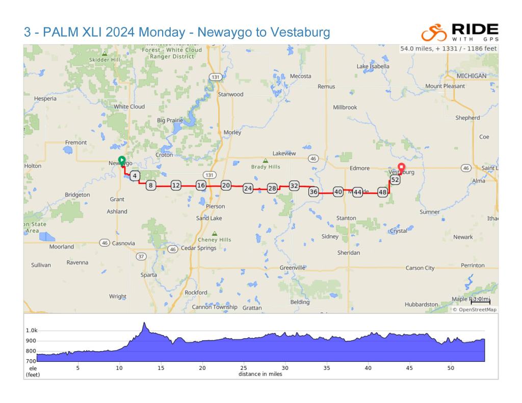 On Monday, we will pedal from Newaygo to Vestaburg.
