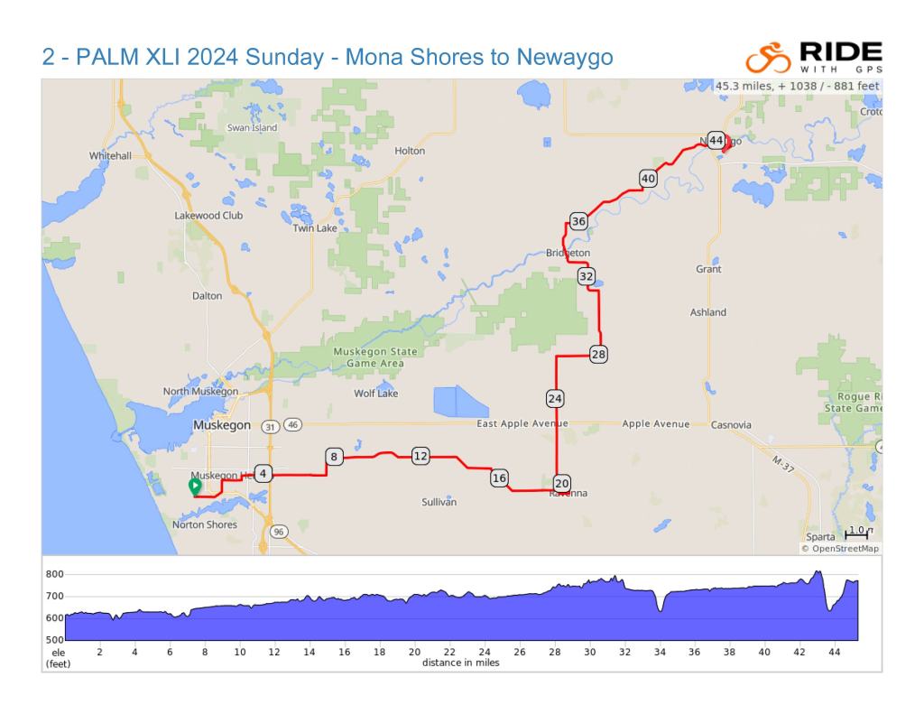 On Sunday, we will pedal from Norton Shores to Newaygo.