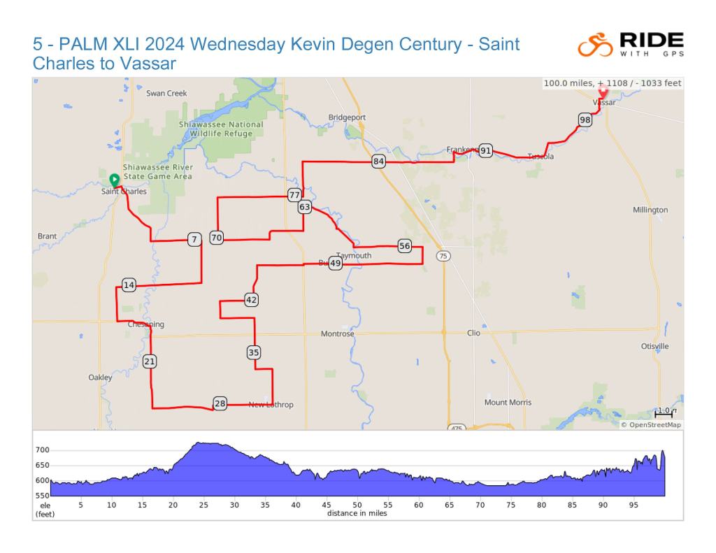 On Wednesday, we will pedal from Saint Charles to Vassar.